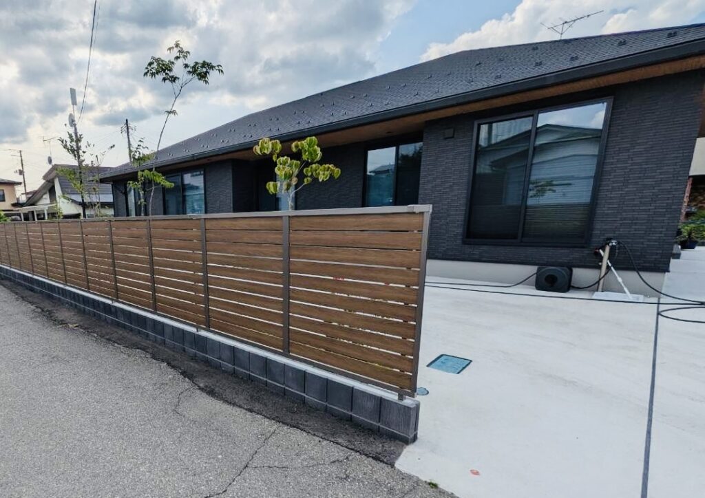 お施主様のご要望は、「ナチュラルで家の雰囲気に合ったデザインにしたい」ということ。そこで、天然木を使った横張りのフェンスをご提案し、周囲の景観にやさしく馴染むよう仕上げました。